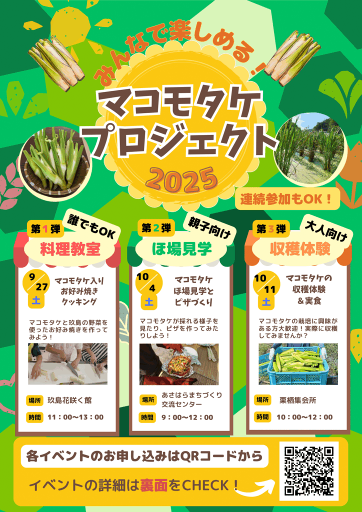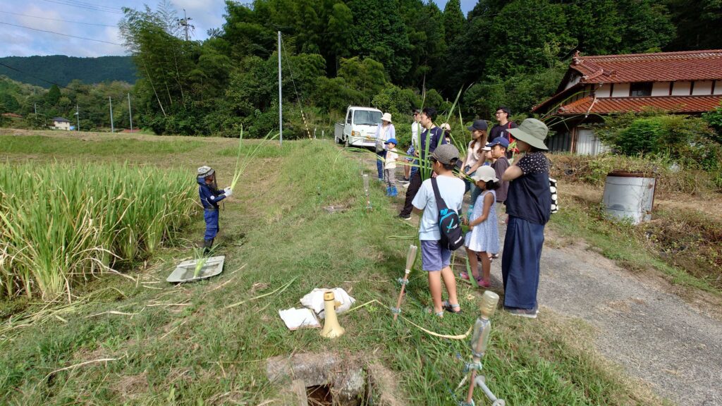 マコモタケの田んぼで、実際に収穫を体験できます。