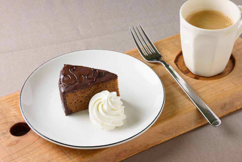 ①ザッハトルテ 550円(税込) ※生クリーム付きは+100円(税込)