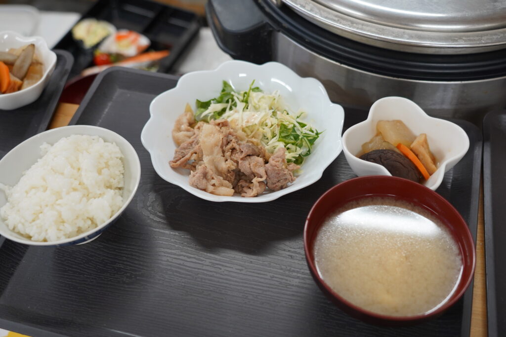 アットホームならではの工夫として、お客様に合わせてごはんの量を減らしたり、残ったおかずをパックに入れて持ち帰るなど、柔軟な対応や声かけで廃棄を0にしています。
