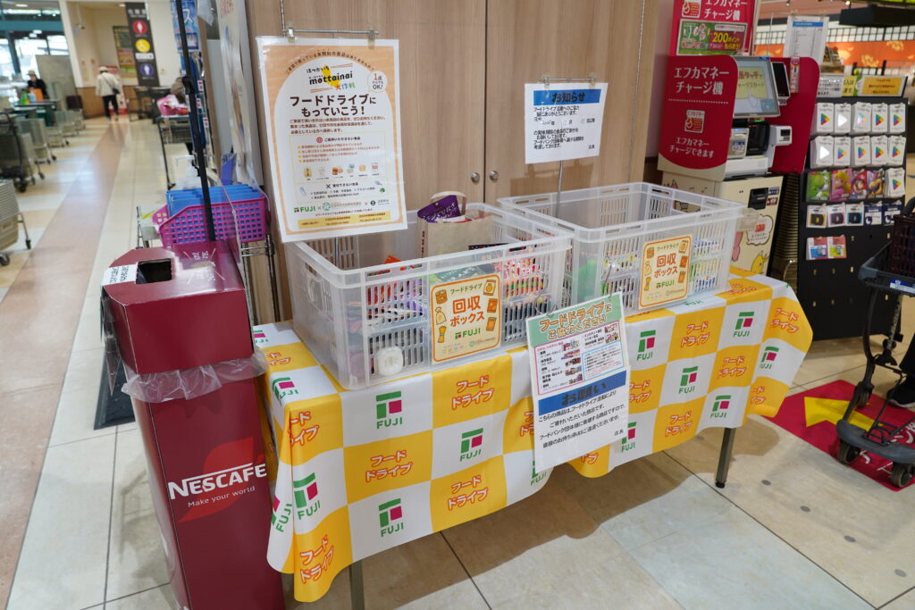 令和7年4月に「株式会社フジ」×「廿日市市社会福祉協議会」×「廿日市市」がフードバンクに関する三者連携協定を締結し、フジグランナタリーでも食品回収ボックスの設置を行い、食品ロス削減の取り組みを進めています。