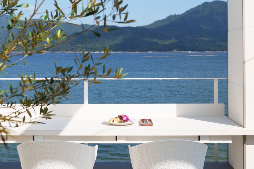 宮島の対岸に佇む、まるでハワイにいるかのようなノースショアスタイルのレストラン。瀬戸内海の多島美を眺めながら、ガーリックシュリンプやロコモコ、パンケーキなど彩り鮮やかなハワイアンメニューが堪能できる。180度以上に広がる海の景色が、訪れる人をハワイの休日へと連れ出してくれるはず。
