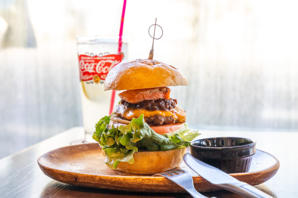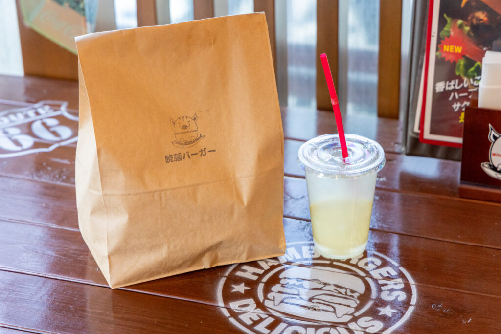 バーガー、ドリンクともにテイクアウトにも対応している。