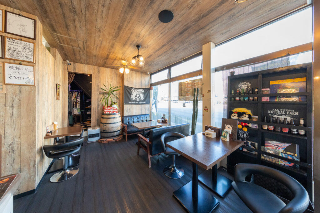 コロナ禍に「提供停止されない店をつくろう」という思いが出発点となり、テイクアウトに適したハンバーガーショップという業態を選んで生まれた「暁輔バーガー」。共同オーナーの二人が広島や山口の人気店を食べ歩きながら研究を重ね、地域に馴染む店づくりを進めてきた。