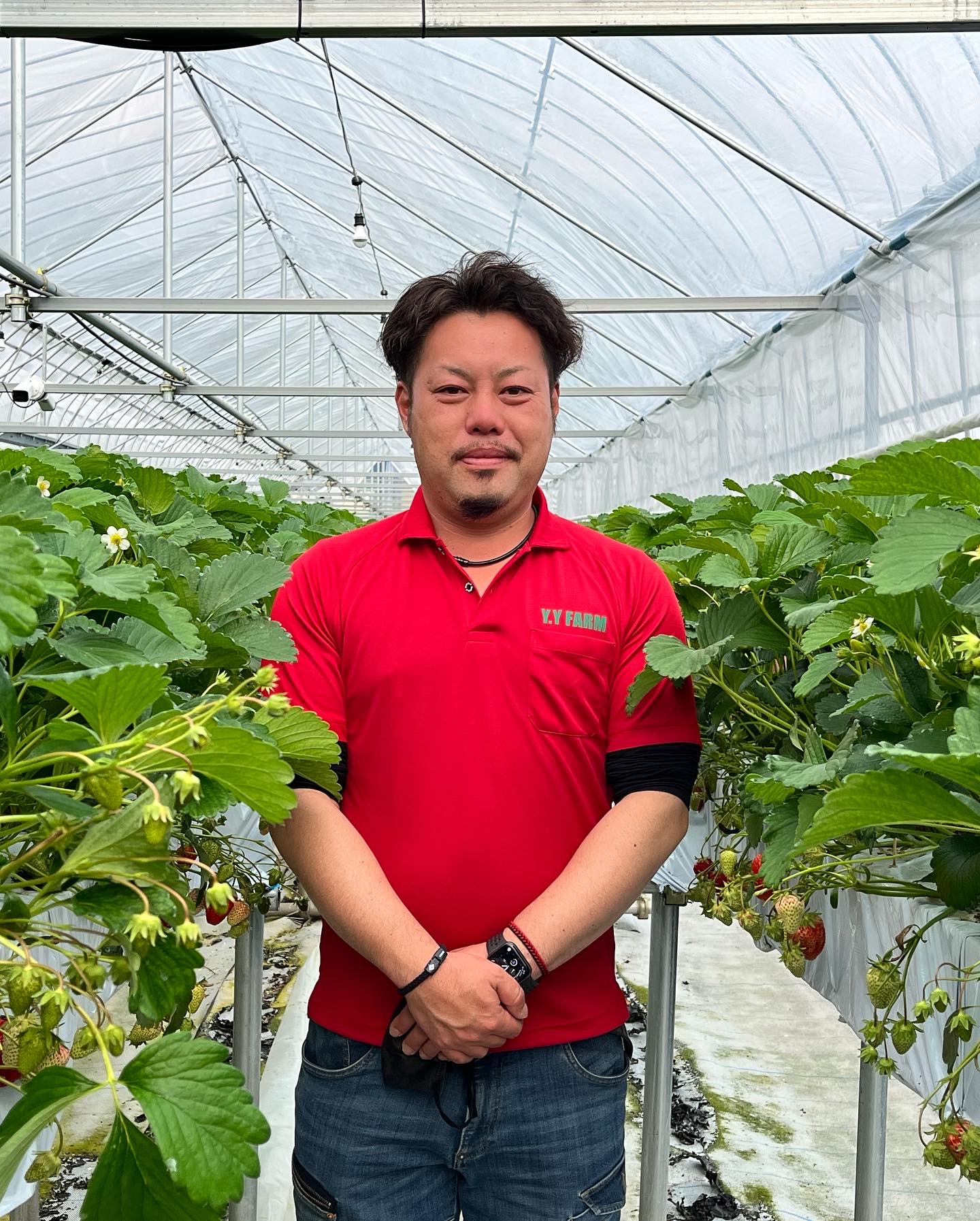 廿日市市津田でいちご栽培を営む『ワイ・ワイファーム』。「みんながワイワイ集まってくれるような農場にしたいという願いを込めて名付けました」と、明るい笑顔で語る水田耕太さん。