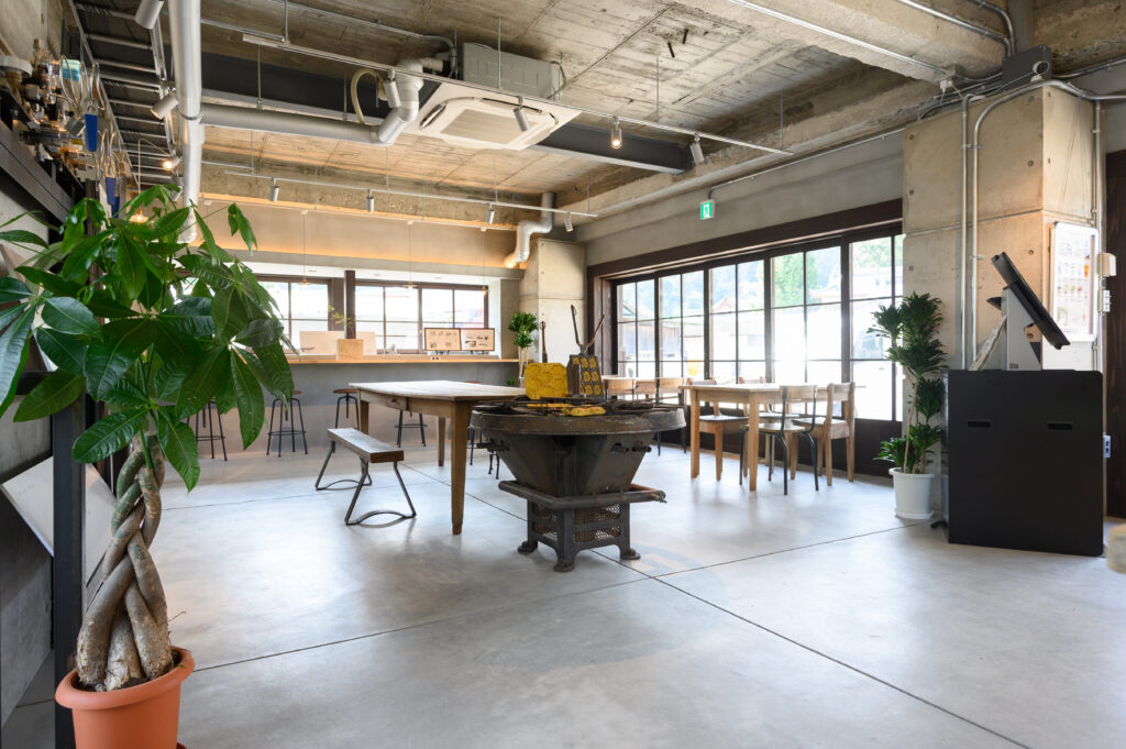 一歩店へ足を踏み入れると、店内にはコンクリート壁のカフェスペースが広がる。1階でオーダーを済ませたら、ギャラリーとしても使われる2階へ上がって過ごすのもいい。