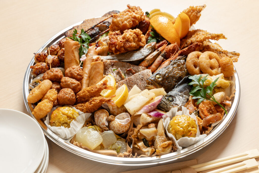 オードブルは季節の旬がぎっしり詰まった内容。子どもからおじいちゃんおばあちゃんまでみんなで楽しめる構成になってる。季節によって中身が変わるから、春夏秋冬それぞれの美味しさが味わえる。
