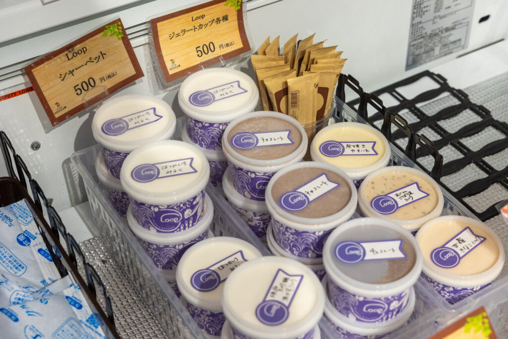 さらに、『Gelateria & Factory Loop』のジェラートや、廿日市の自宅工房『きいろ』のスコーンやプリンといった、限られた場所でしか味わえないスイーツも並び、手土産選びにもおすすめです。