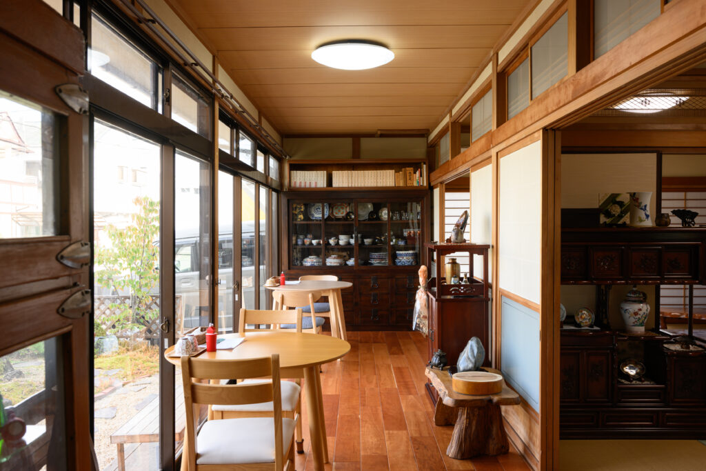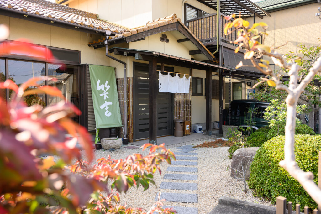 石のアプローチと庭園を抜けた先に佇むのは、住宅を改装した落ち着きある店。庭では季節の花が咲き、訪れる度に表情を変える。靴を脱いで上がるスタイルゆえ、まるで家に招かれたようにくつろぎながら食事をいただこう。