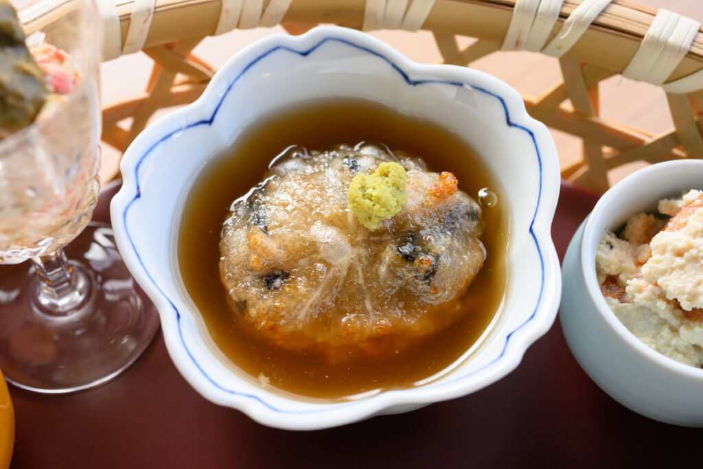 坂本さんは、出汁ひとつにも強い流儀がある。和食で使われる一番だしは通常、かつおと昆布で引くことが多いが、坂本さんは、さば・うるめいわし・かつお・昆布を用いて、旨みをいっそう深めている。この“底力”のある出汁をベースにしているからこそ、小鉢はもちろん、茶碗蒸しなどの料理も奥行きのある味わいに仕上がる。それゆえ、定休日の火曜日から木曜日は、仕込みをし続けているのだとか。そんな妥協のない真摯な仕事ぶりも感じてほしい。