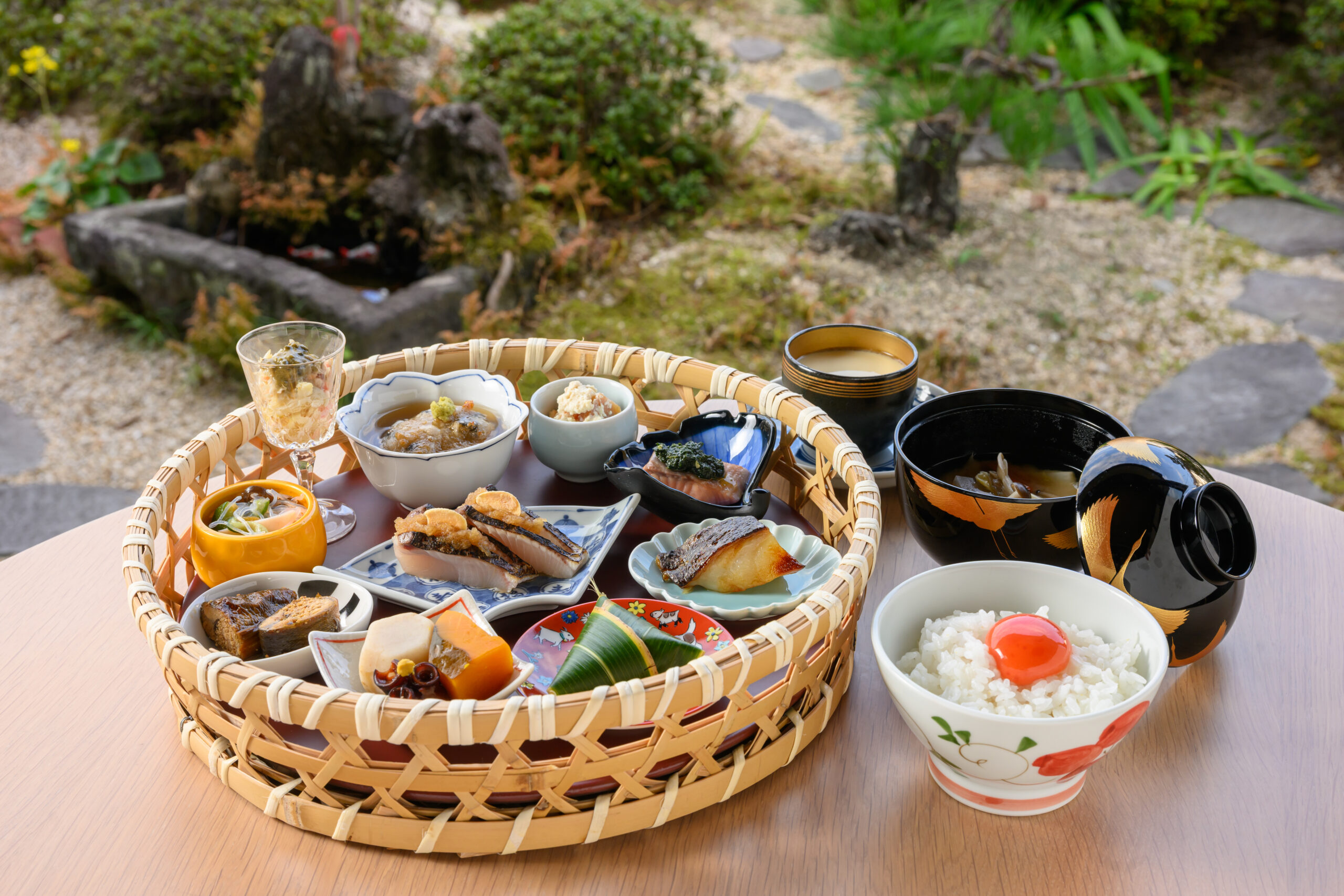店主の思い入れは、卵にも向けられている。大分や姫路から仕入れる卵は濃厚で、籠盛り御膳にはこの卵を使った卵かけご飯が提供されるのもうれしい。