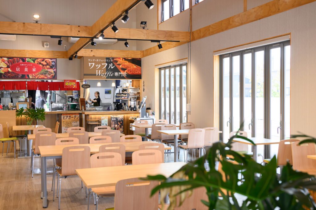 宮浜温泉街にある『ペンションあんばらんす』の朝食で人気のアメリカンワッフルが、『まちの駅ADOA大野』でも味わえる。ワッフルといえど、デザートから食事系まで楽しみ方次第で表情はさまざま。モーニングやランチ、ちょっとしたカフェタイムにもぴったりなので、幅広いシーンを彩ってくれそうだ。さらに、テイクアウトOKのフラッペも用意。まちの駅のショッピングついでにゲットしてみて。