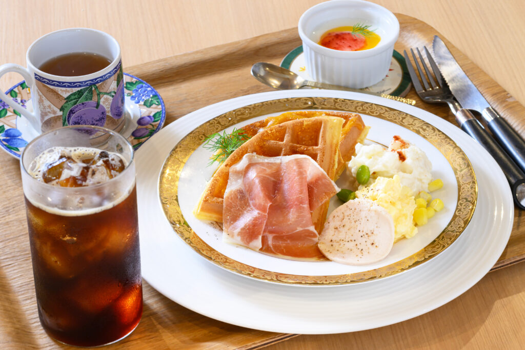 今日のランチにワッフルはいかが? 生ハムや自家製鶏ハム、チェダーチーズ、ポテトサラダ、たまごサラダ、えだまめコーンなど、バラエティ豊かなトッピングがズラリ。どれから味わうか迷うのも楽しみのひとつだ。あれこれ組み合わせながらひと口ごとに食べ進めれば、食事系ワッフルのおいしさにきっと驚くはず。選べるドリンクに加え、ヨーグルトとスープ付き。11時30分〜14時30分にオーダーできる。